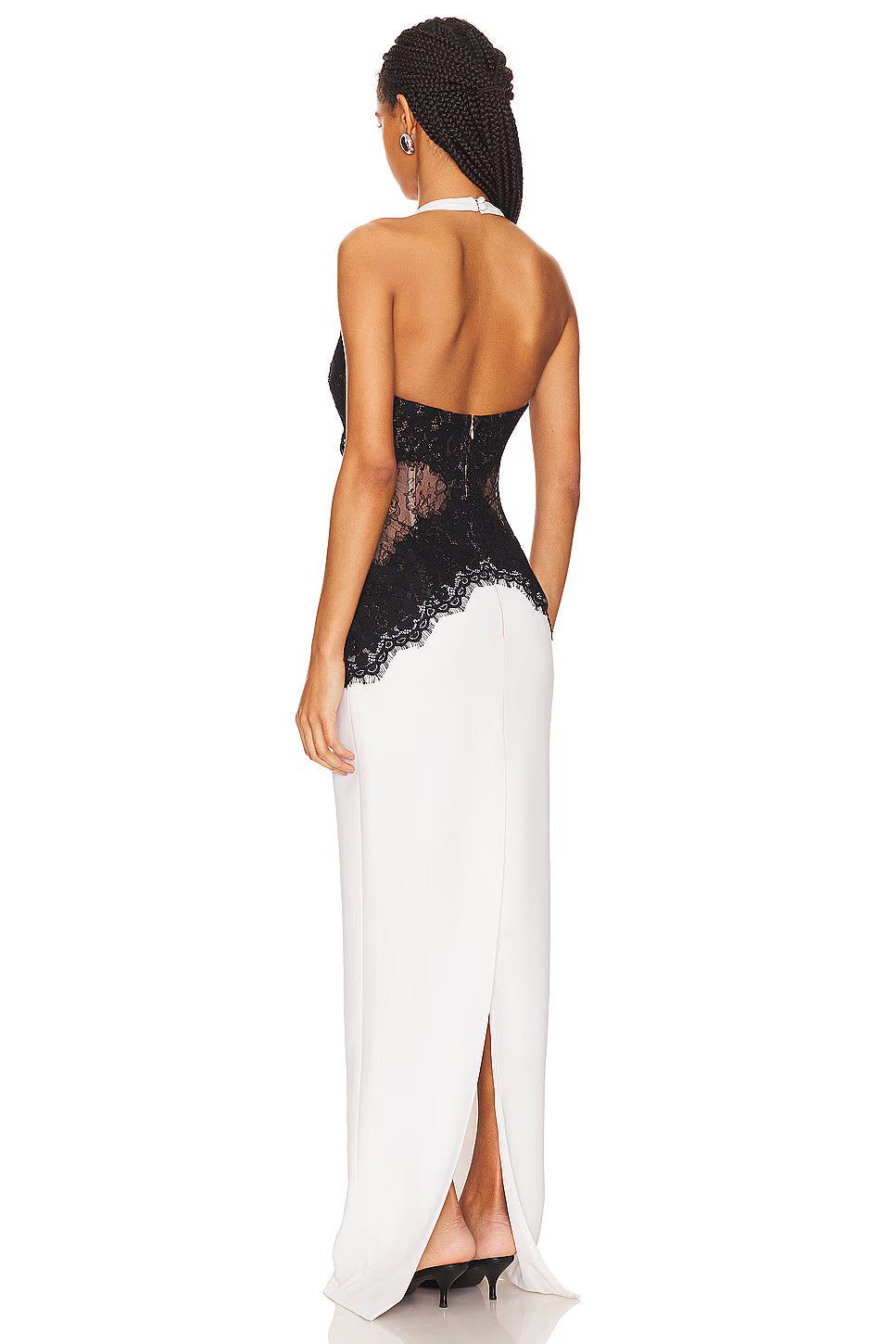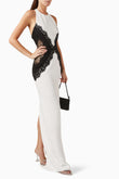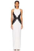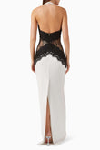 White Halter Neck Gown with Black Lace Detailing