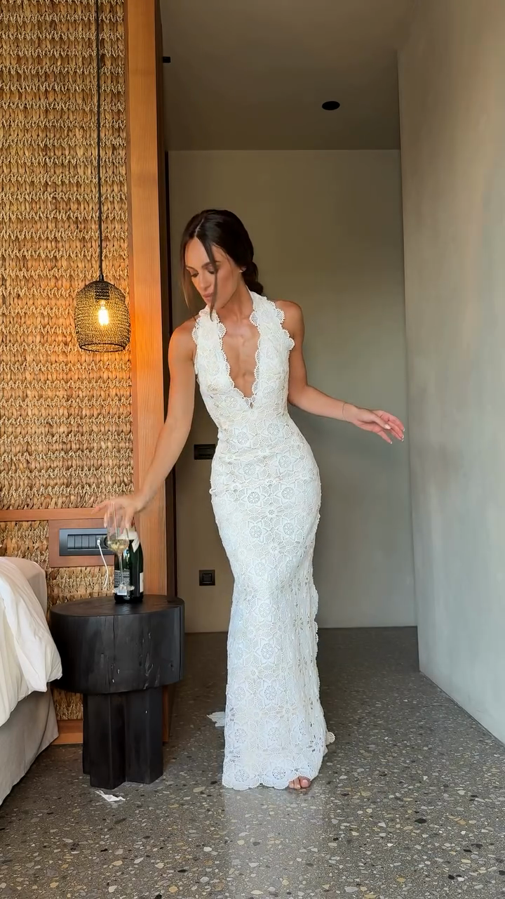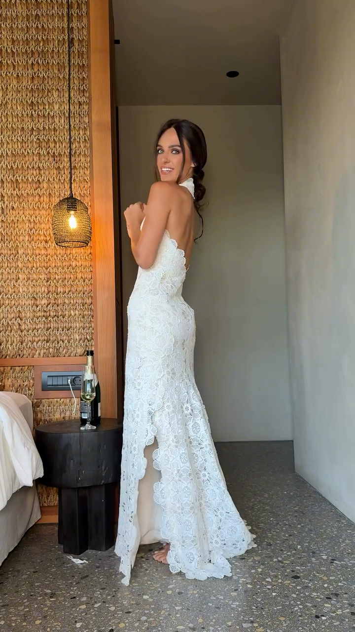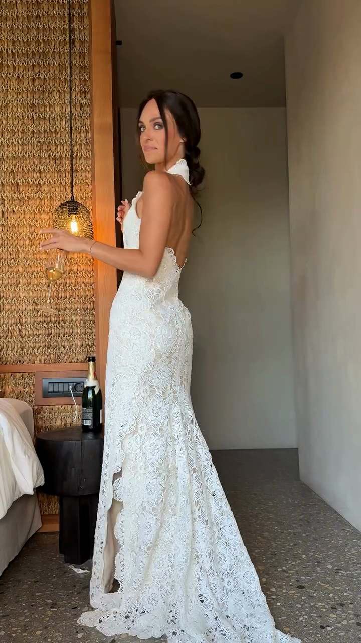 White Lace Halter - Neck Wedding Dress