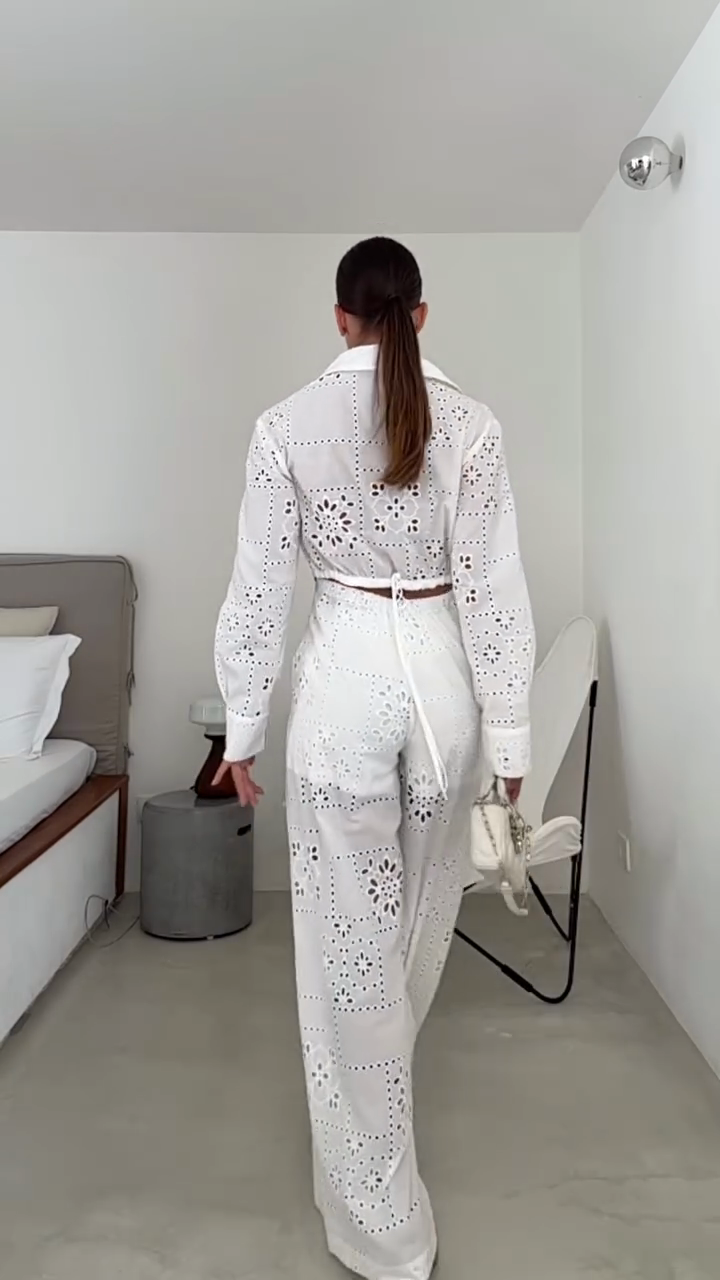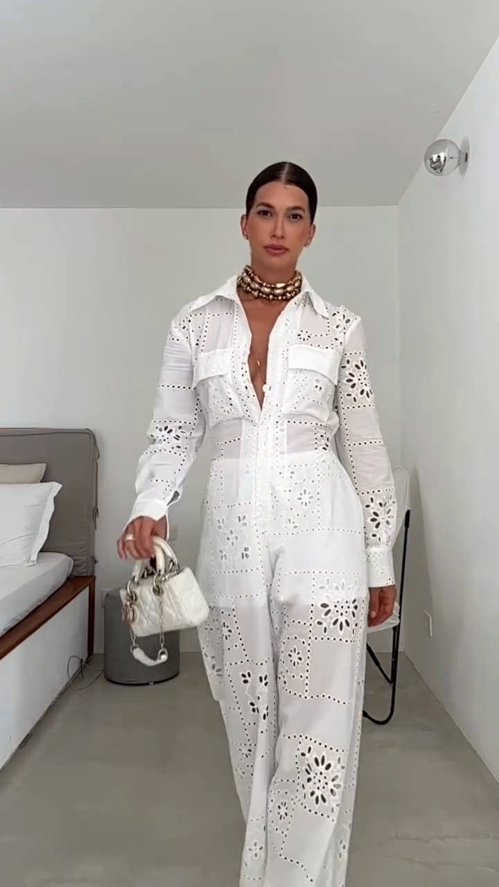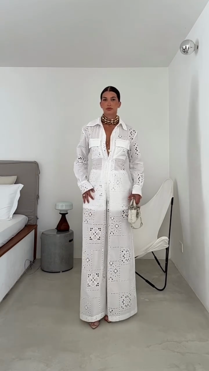 This outfit is light and elegant with exquisite details. This embroidered jumpsuit is perfect for summer activities, brunch, or vacations, perfectly blending comfort and style.