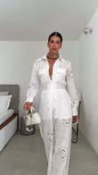 White openwork embroidered jumpsuit