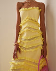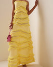 Yellow Strapless Ruffled Maxi Dress